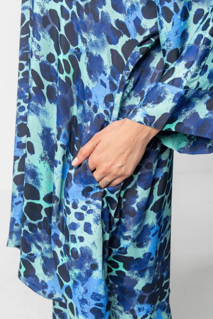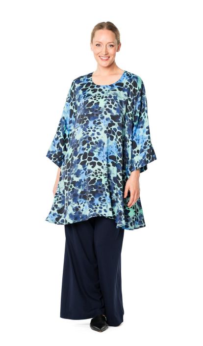 Bianca-tunikassa on reilu mitoitus ja kellomainen helma. Tunikassa on leveät kimonomalliset hihat ja pyöreä pääntie. Sivusaumoissa on kätevät taskut. Materiaali on pehmeää ja kauniin kiiltäväpintaista viskoosisatiinia.