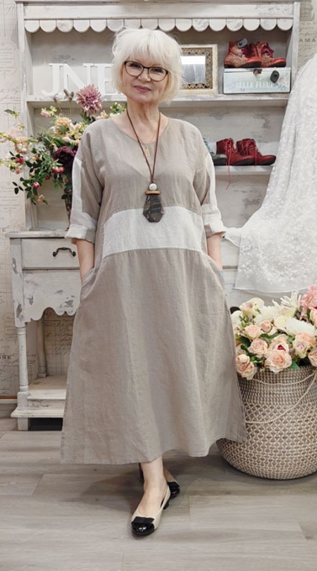 Todella mukava Boheme mekko ylellisestä sekoitteesta pellavaa ja puuvillaa. Tilava malli on näyttävä ja mukava kesällä.