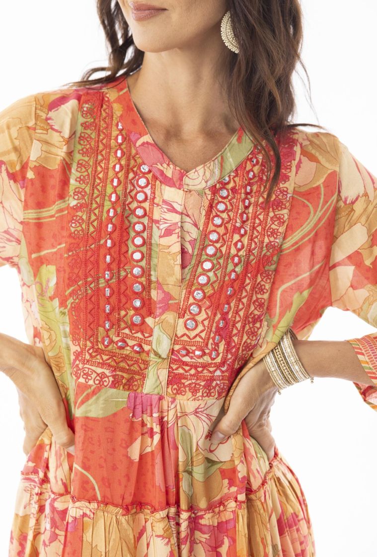 Taivaallisen pehmeä ja hengittävä mekko on täydellinen kesän rantapäiville, juhliin ja arkeen! Mallissa on koristeina kiiltävät yksityiskohdat ja romanttiset leikkaukset rypytyksillä.