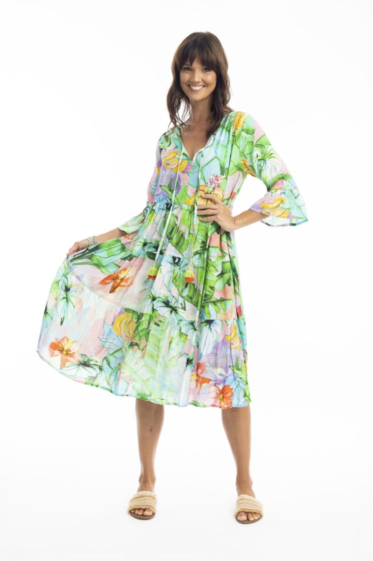 Kukin Escapen printti on käsin piirretty ja uniikki ja painettu hienoille, aina luonnonmateriaaleista valmistetuille kankaille. Escapea voi pukea arkeen ja juhlaan, asusteista riippuen.