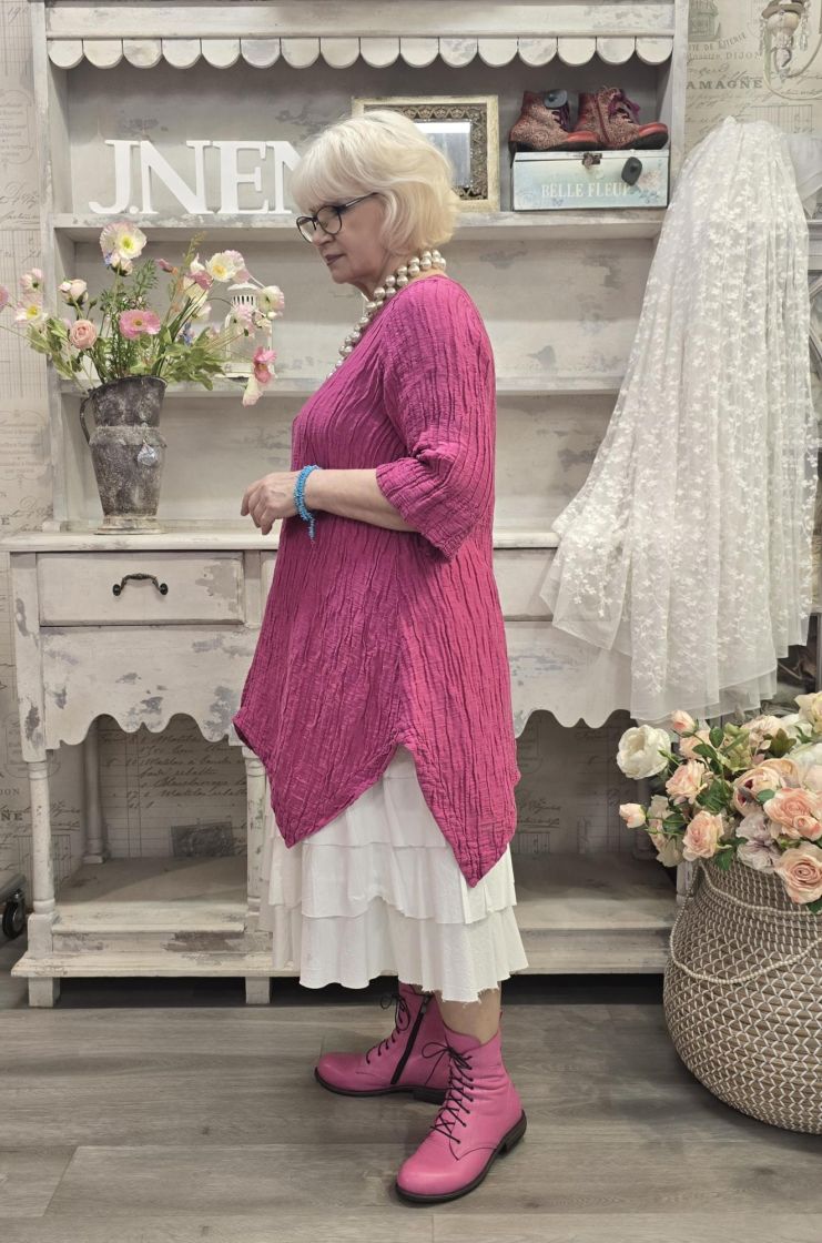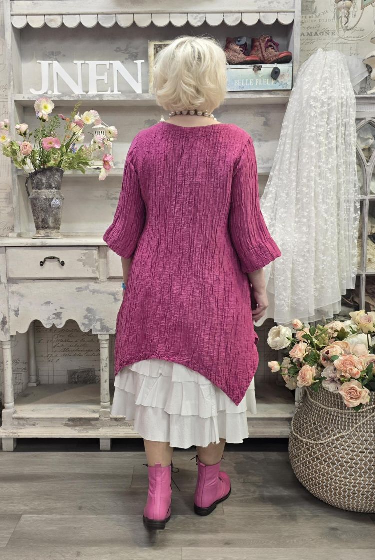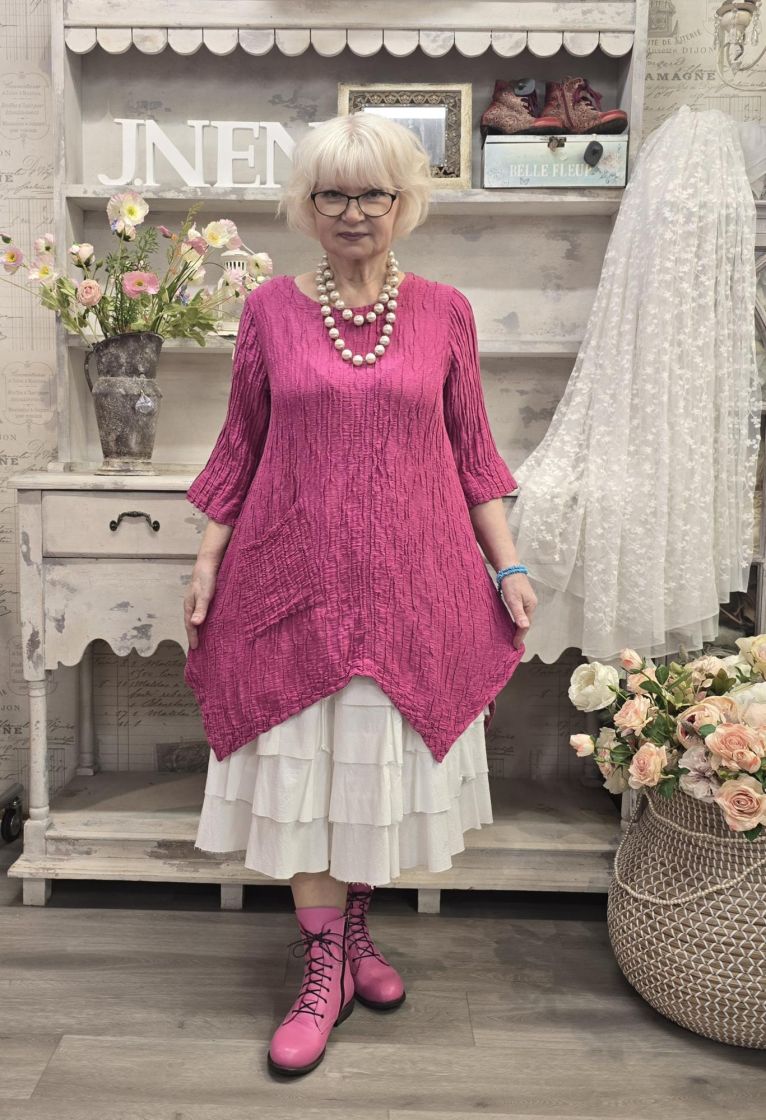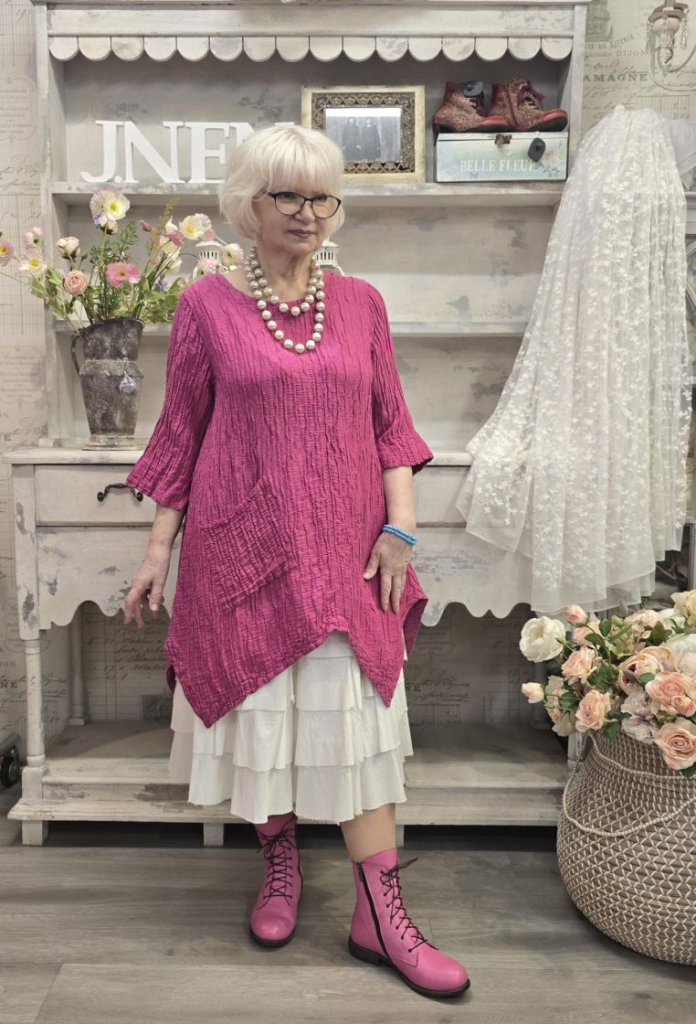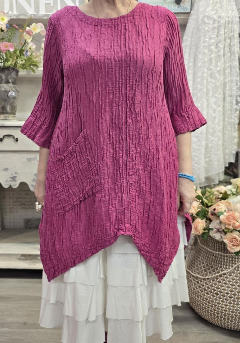 Tästä luonnollisesta tunikasta tulee hetkessä vaatekaappisi suosikki. Se on leikattu ryppyisestä pellava/silkkikankaasta ja siinä on epäsymmetrinen helma, jota korostaa söpö sivutasku. Pue tunika housujen tai leggingsien kanssa.