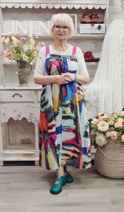 Tässä liivimekko mallissa on ihastuttava kuosi ja se on täydellinen vaate kun haluat helpon ja ylelliseltä tuntuvan, uniikin asun.