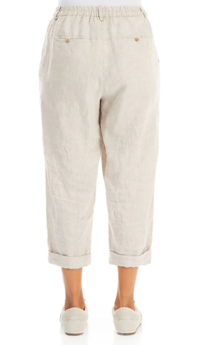 Nämä housut on valmistettu hengittävästä ja pehmeästä pellavasta, ja niissä on lyhyet, ylös käärittävät lahkeet ja joustava vyötärö – juuri sitä, mitä tarvitset todelliseen mukavuuteen.