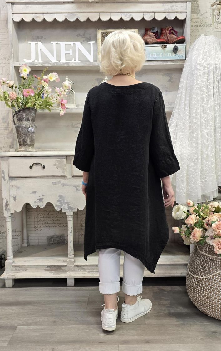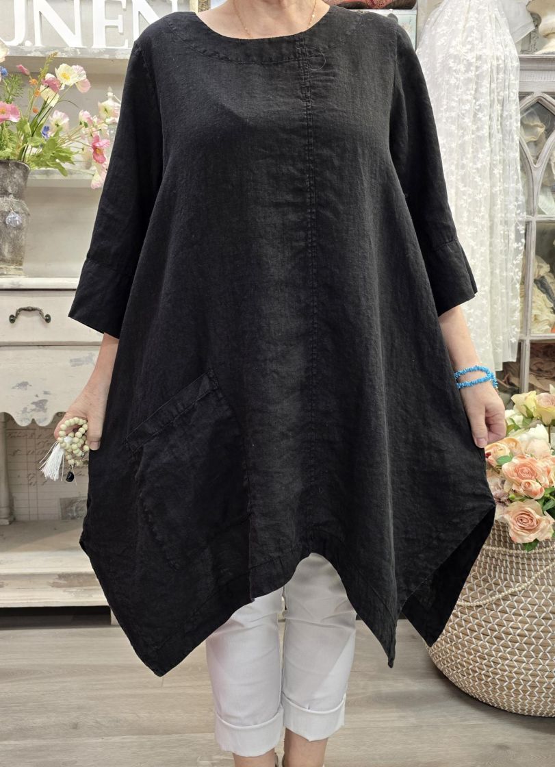 Tämä Grizas klassikko tunika on todella pehmeää pellavaa ja siinä on uniikki, epätasainen helma joka aaltoilee mukanasi.