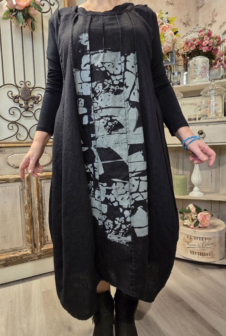 Materiaali: 100% pestyä pellavaa. Hyvin hengittävä ja mukava kudos. Hihat ovat joustavaa ja mukavan tuntuista viskoosia joka tuntuu iholla kivasti viileältä.