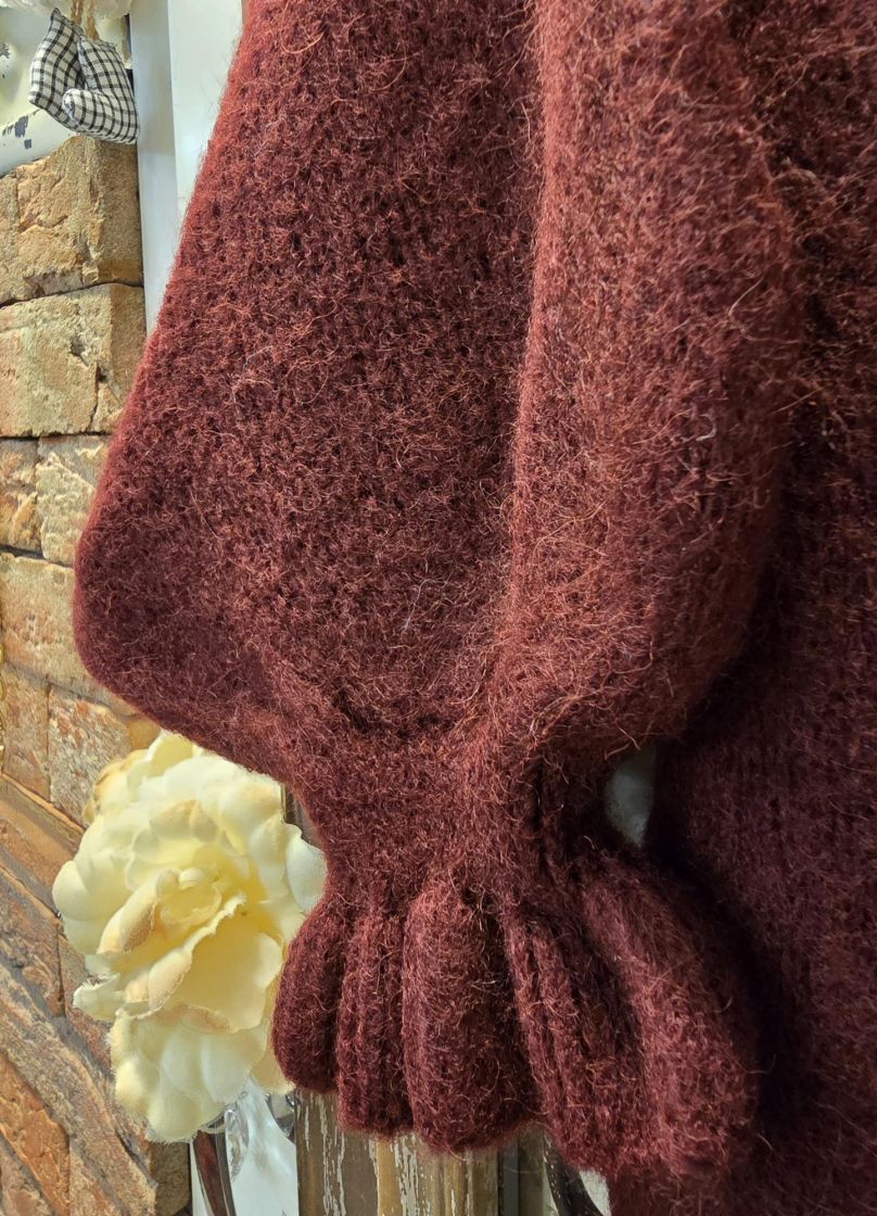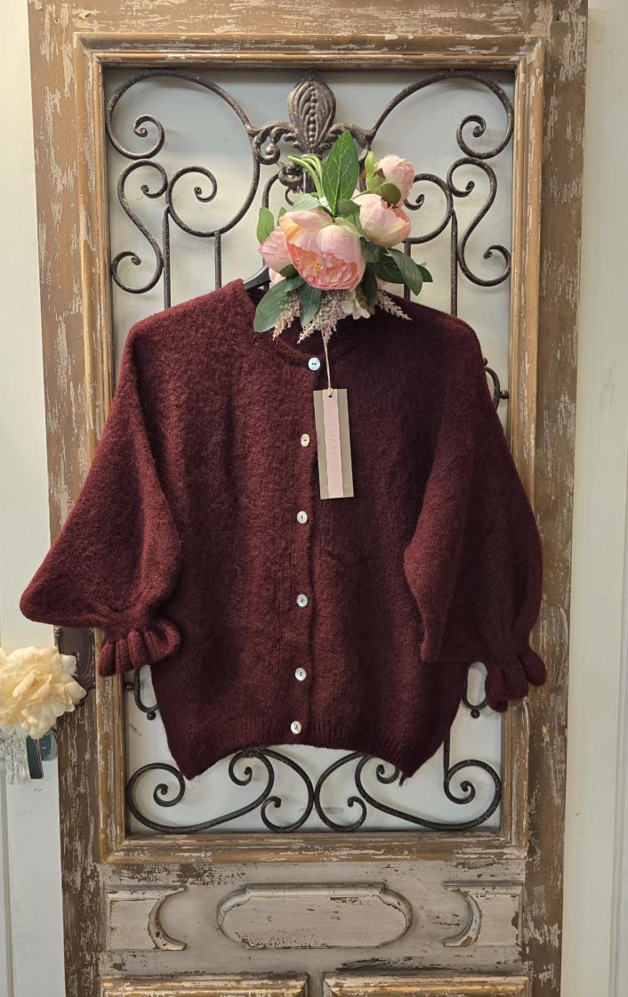 Marta du Château pörröinen neulejakku 2413 Vino eli Trendikäs viininpunainen todella mukava pörröneule