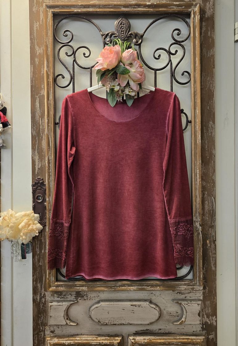 Marta du Château Punainen paita pitsi hihojensuilla kaunis aluspaita joustavasta viskoosista