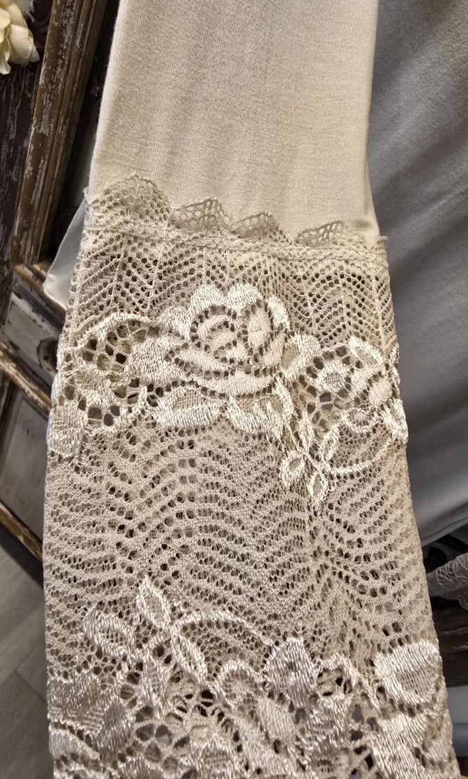 Marta du Château Puuteri/latte paita pitsi hihojensuilla kaunis aluspaita joustavasta viskoosista