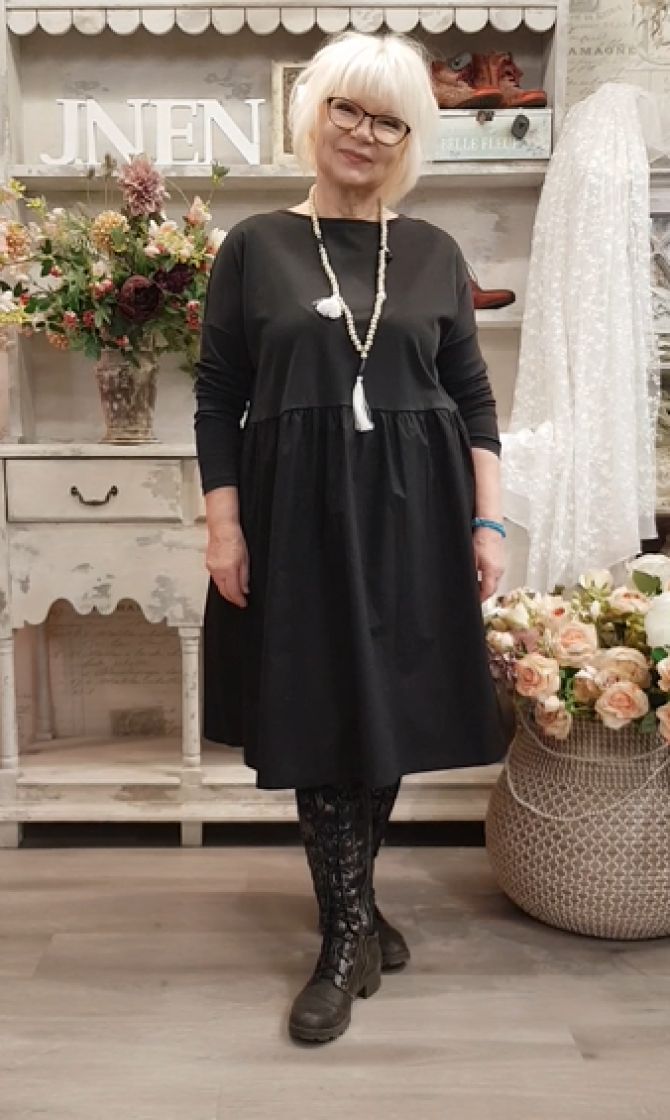 Tämä on vaatekappale joka kuuluu jokaiseen vaatekaappiin! Naviran malli yhdistyy vaivattomasti mihin vain asuun ja tyyliin. Pue päälle ihan mitä vain ja malli pysyy tyylikkäänä. Se on valmistettu pehmeästä puuvillasta ja siinä on erinomaisessa kohtaa poikkileikkaus tuomassa tilaa. Poikkileikkauksessa on kauniit rypytykset ja mekon alaosa on kevyttä taftimaista kangasta.