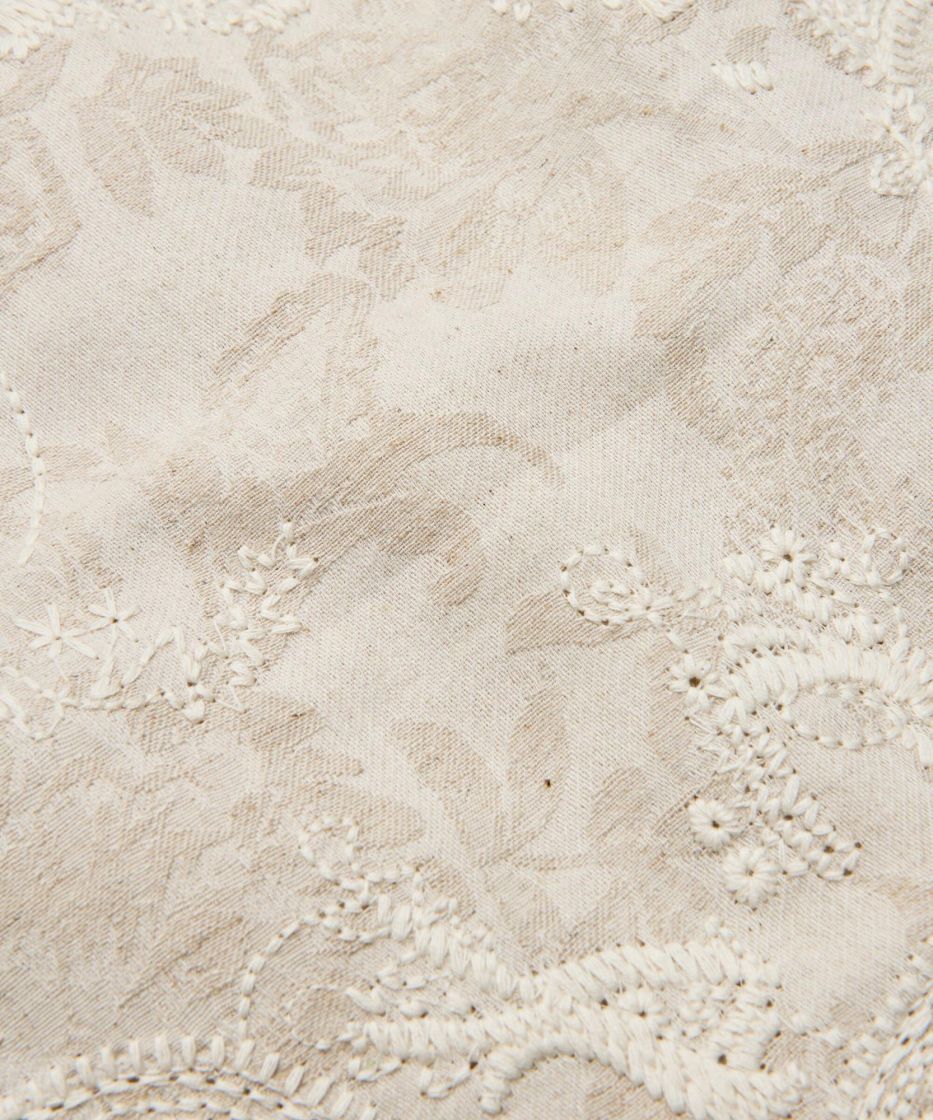 Materiaali: 40% puuvilla, 38% polyesteri, 12% viskoosi, 10% pellavaa. Ihanan tuntuinen ja hengittävä kangas jossa päälle kirjailtu kukkakuosi.