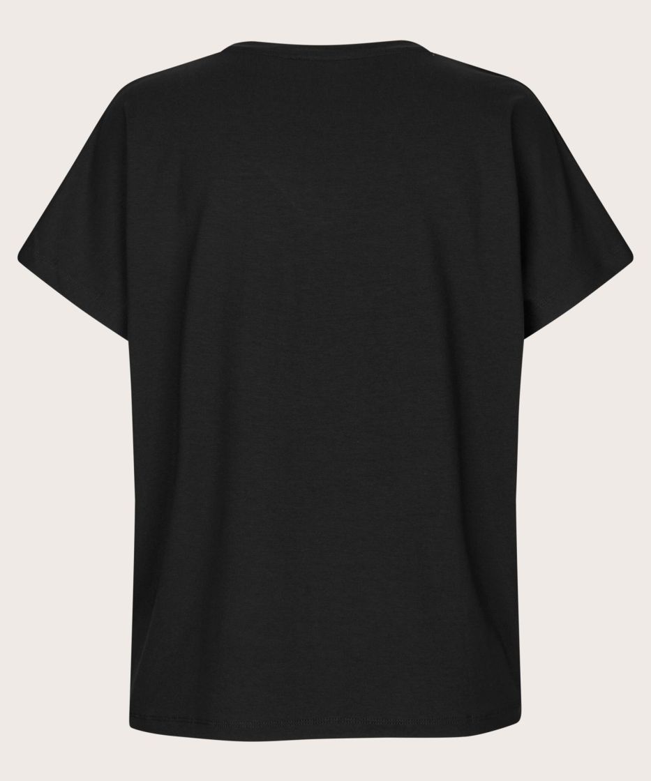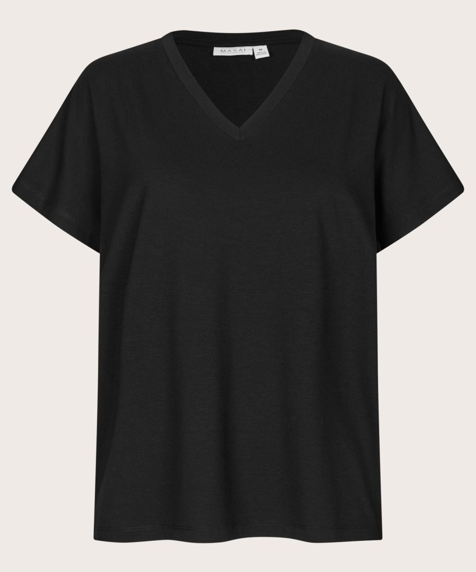 Vaatekaappisi välttämätön perusvaate on yksinkertainen, pehmeä ja monipuolinen. Paita on valmistettu superpehmeästä trikoosta, ja siinä on klassinen, suora leikkaus, joka laskeutuu kauniisti vartalon yli. Naisellisella V-pääntiellä ja lyhyillä hihoilla varustettu malli laskeutuu kauniisti. Täydellinen joka vuodenaikana farkkujen, hameiden ja kerrostettujen asujen kanssa. Tyylikäs arjen suosikki, jota rakastat käyttää kerta toisensa jälkeen.