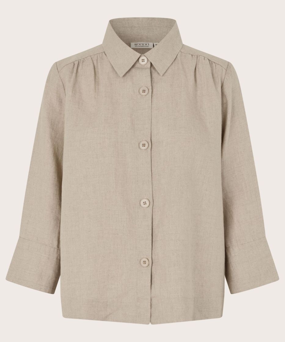 Parhaat mallit sopivat yhteen monella eri tavalla, ja tämä pellavapaita toimii täydellisesti sekä paitana että kevyenä jakkuna. Paidassa on naisellinen ja ajaton ilme, klassinen kaulus, väriin sovitetut napit ja leveät kolmeneljäsosahihat. Yhdistä se kevyesti kerrospukeutumiseen naisellisen yläosan tai paidan kanssa tai luo pehmeä puku yhteensopivien housujemme avulla.
