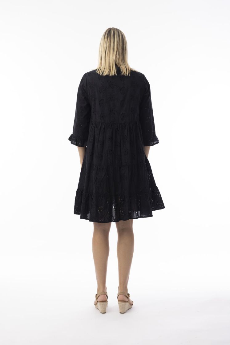 Tämä mekko on täydellinen kesään miellyttävän puuvillan ansiosta. Siinä on päällyskankaassa kauniit reijät ja alla on miellyttävä alusmekko.