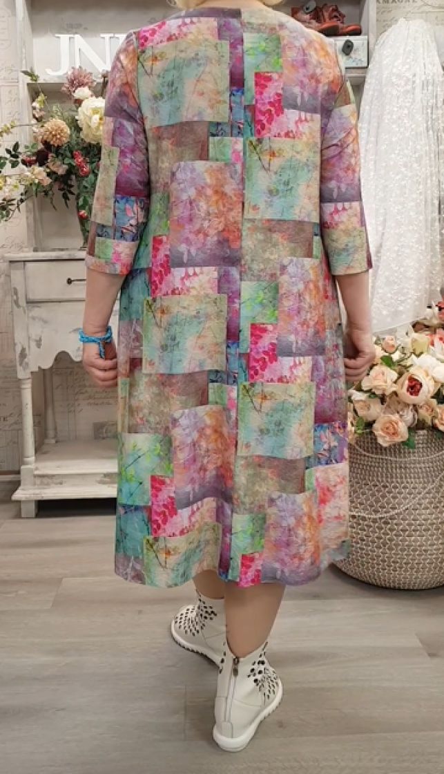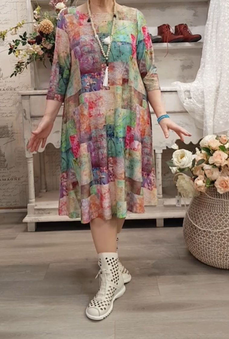 Fiorina -mekossa on kaunis juhlava malli: hieman vartaloa myötäilevä yläosa ja kellotettu helma. Mekossa on pyöristetty venepääntie ja 3/4 mittaiset hihat. Sivusaumoissa on kätevät taskut.