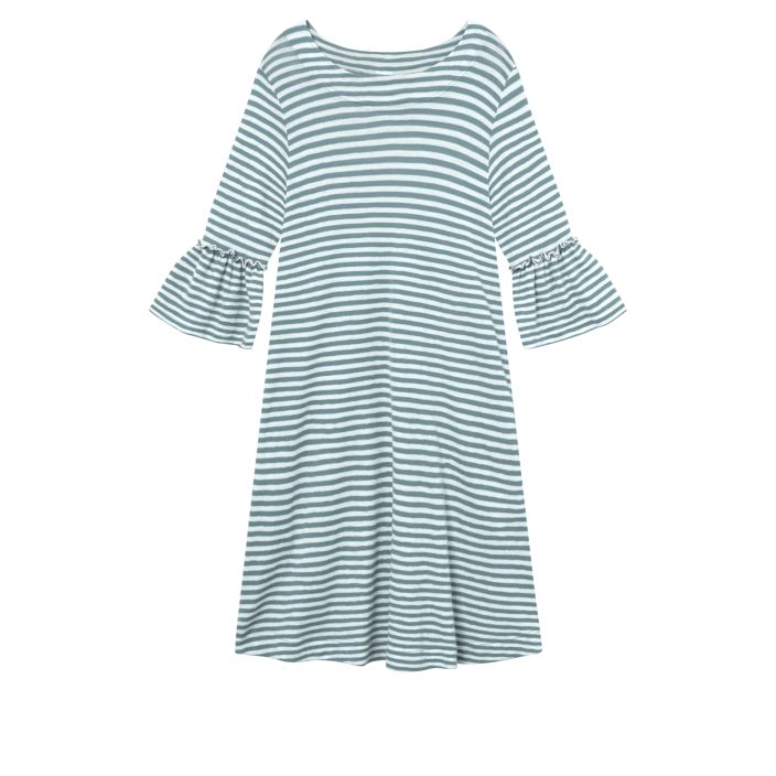 Uusi söpö mekko malli! Pyöreä pääntie, A-linjainen mukava laskeutuminen ja sivuissa taskut. 3/4 hihat joiden suissa frillat.