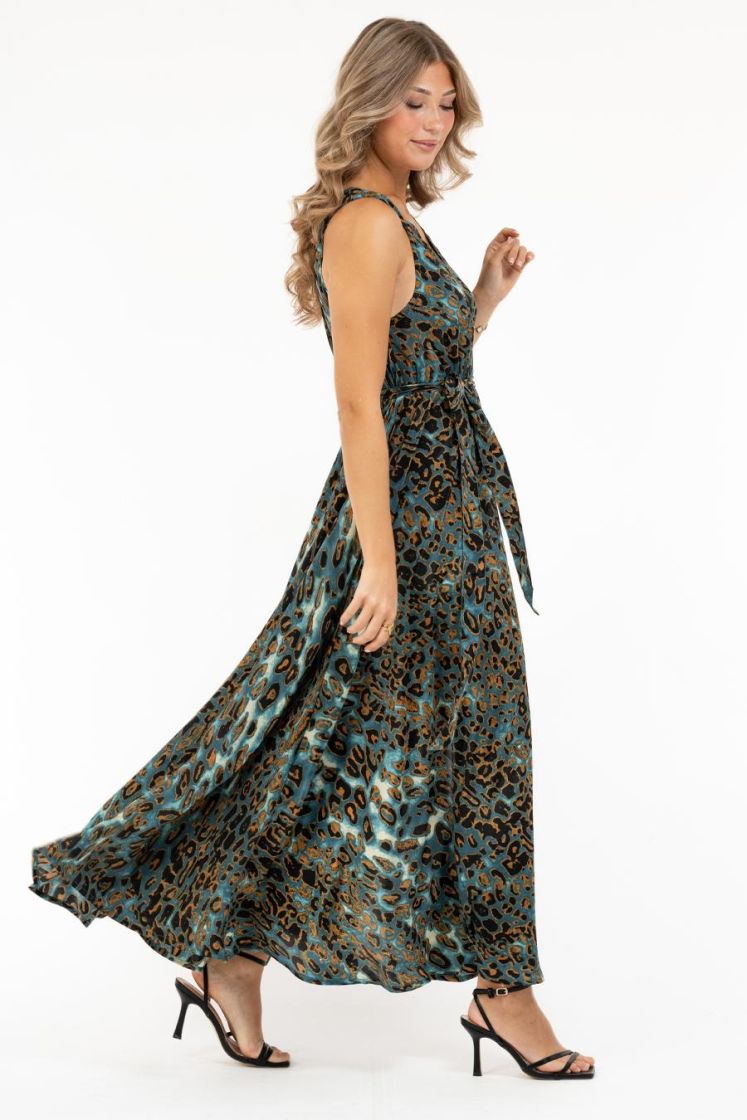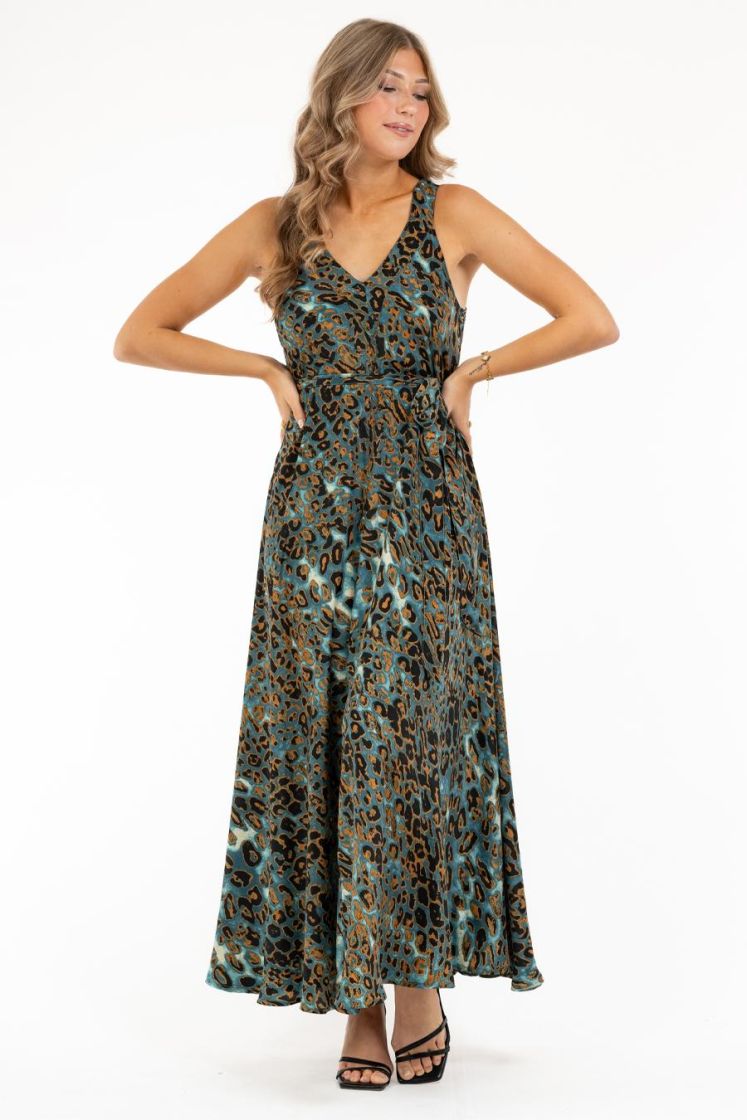 Ihana kuosi trendikkäissä sinisissä sävyissä uskomattoman kiiltävässä, silkin pehmeässä kankaassa! Ihanan rento istuvuus. Korkea halkio edessä keskellä ja mukana tuleva irrotettava vyö.