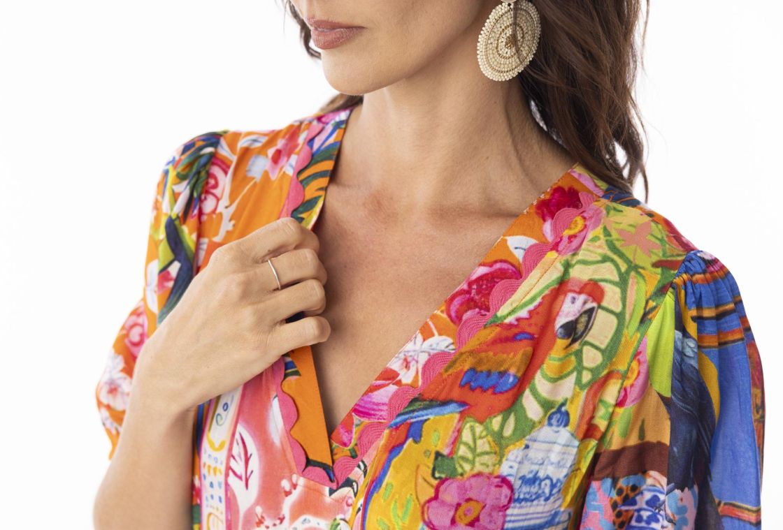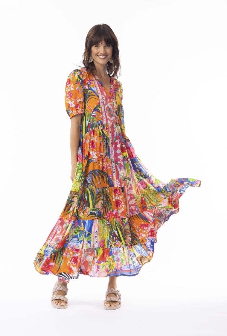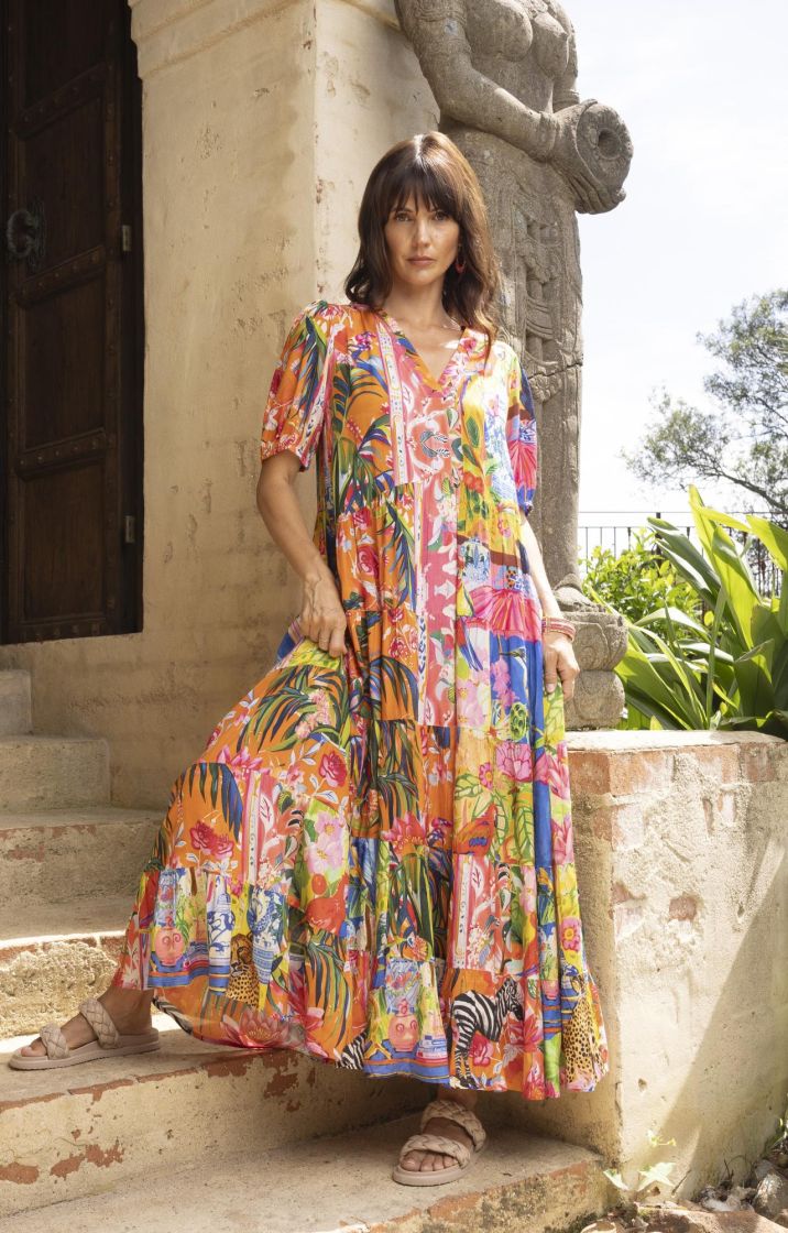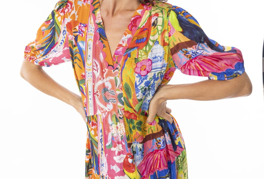 Tässä Escape malliston upeassa mekossa on todella pirteät värit ja mukavat leikkaukset.
