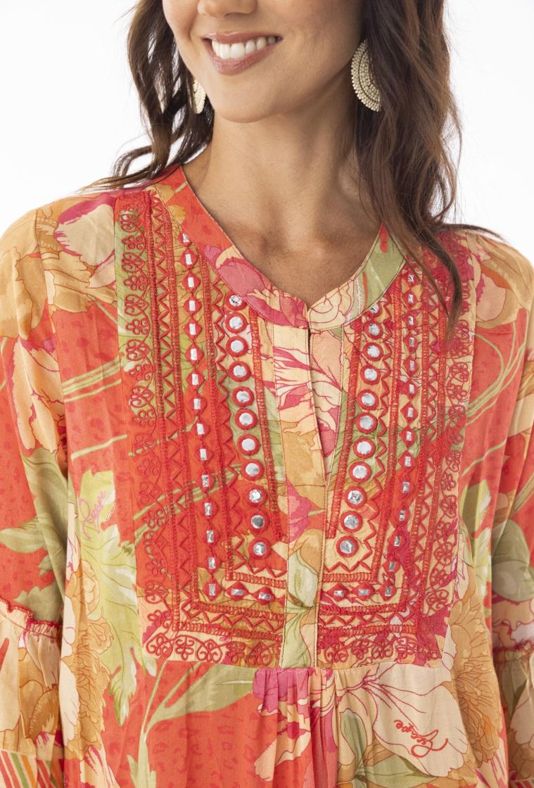 Taivaallisen pehmeä ja hengittävä mekko on täydellinen kesän rantapäiville, juhliin ja arkeen! Mallissa on koristeina kiiltävät yksityiskohdat ja romanttiset leikkaukset rypytyksillä.