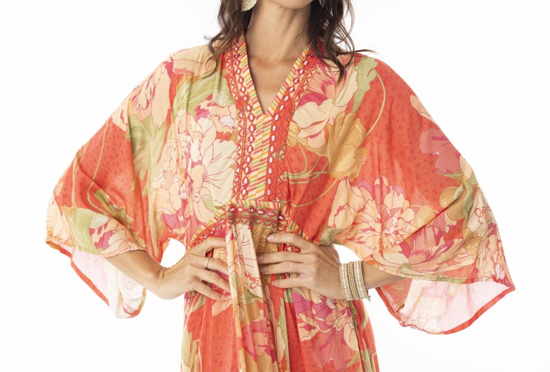 Pitempää mallia oleva näyttävä ja super mukava Escape mekko jossa on kimonomainen leikkaus ilmavalla laskeutumisella.
