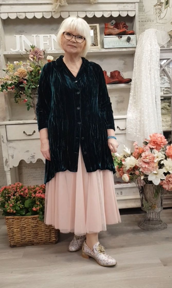 Materiaali: 82% viskoosi, 18% silkki. Korkealaatuinen ja taivaallisen mukava kangas joka myös hengittää hyvin. Pinta on kauniisti kiiltävä ja kangasta on rypytetty upeasti tekstuuriseksi.