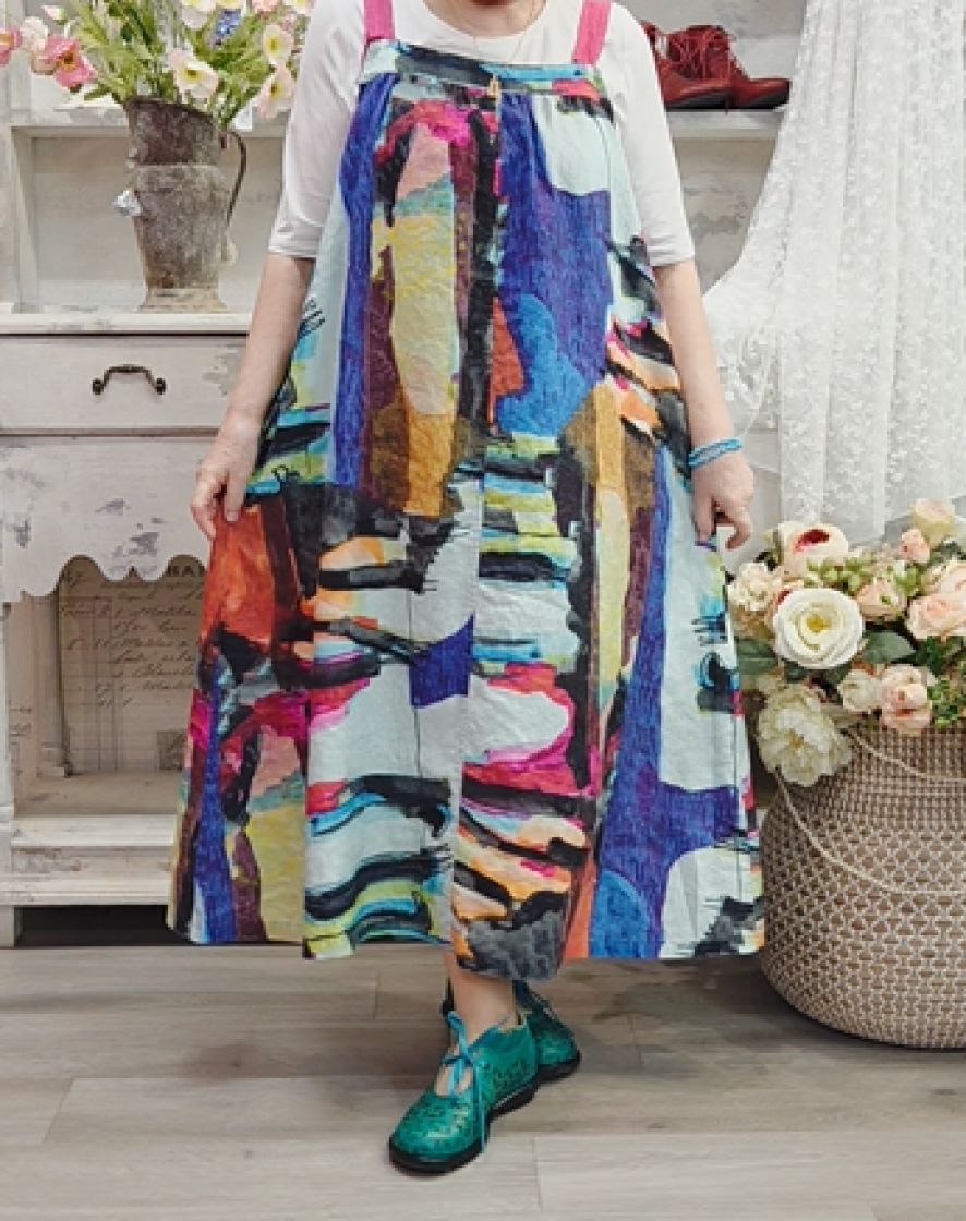 Tässä liivimekko mallissa on ihastuttava kuosi ja se on täydellinen vaate kun haluat helpon ja ylelliseltä tuntuvan, uniikin asun.