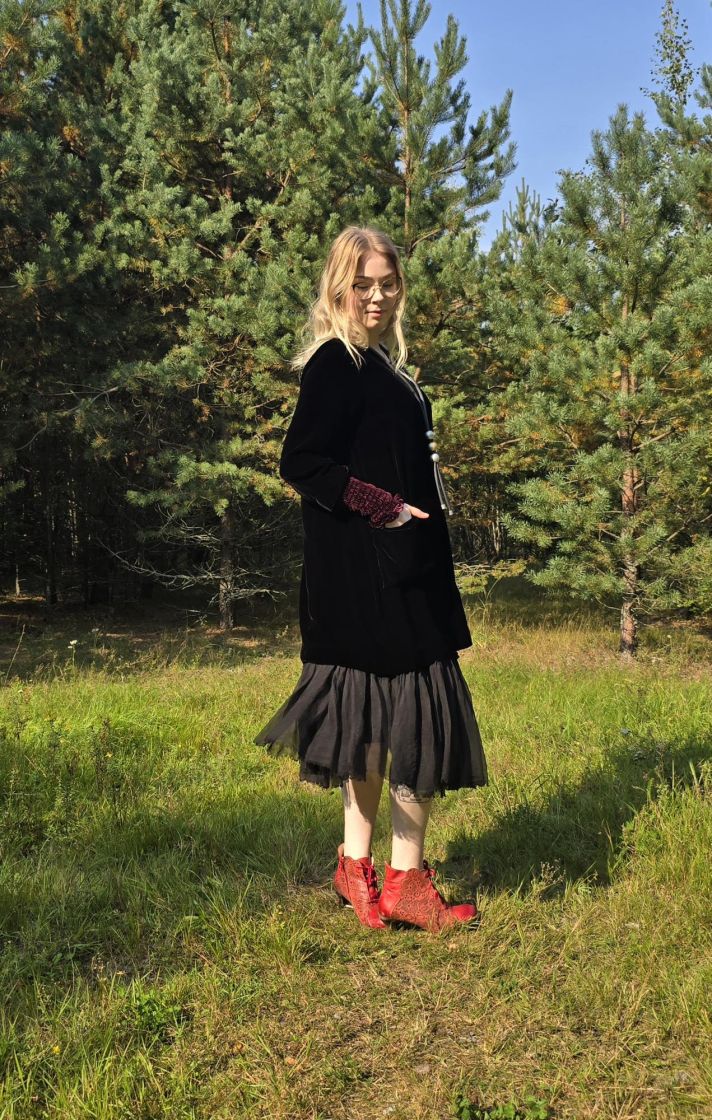 Materiaali: 82% viskoosi, 18% silkki. Hyin hengittävä, pehmeä laatu samettisella pinnalla.