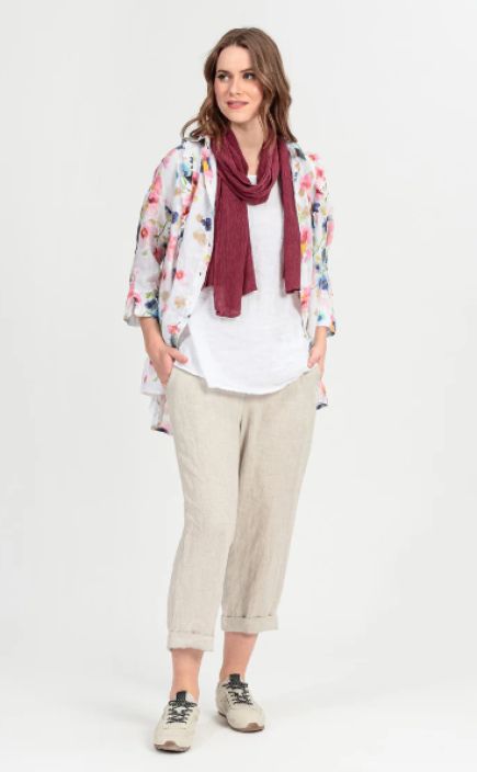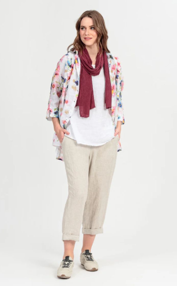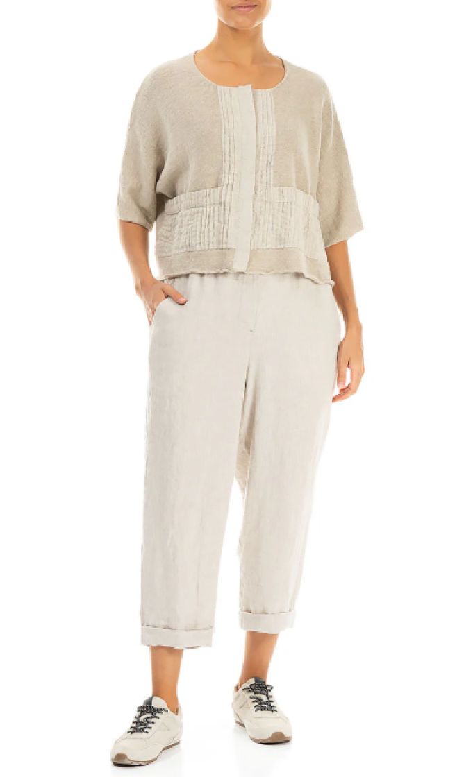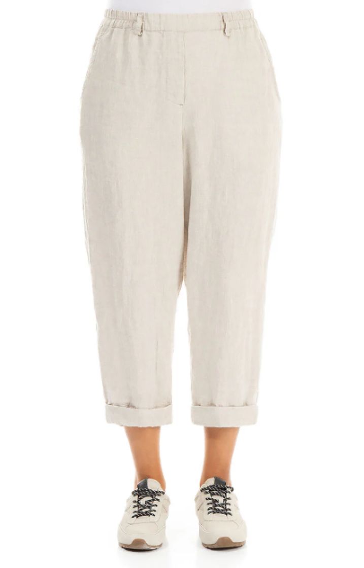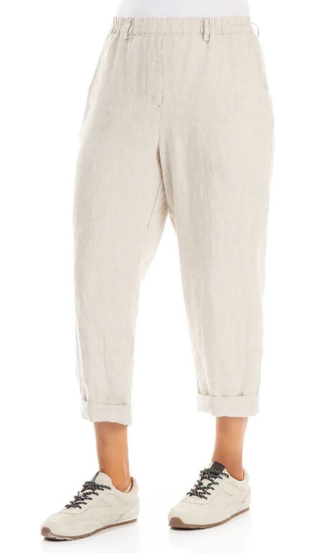 Nämä housut on valmistettu hengittävästä ja pehmeästä pellavasta, ja niissä on lyhyet, ylös käärittävät lahkeet ja joustava vyötärö – juuri sitä, mitä tarvitset todelliseen mukavuuteen.