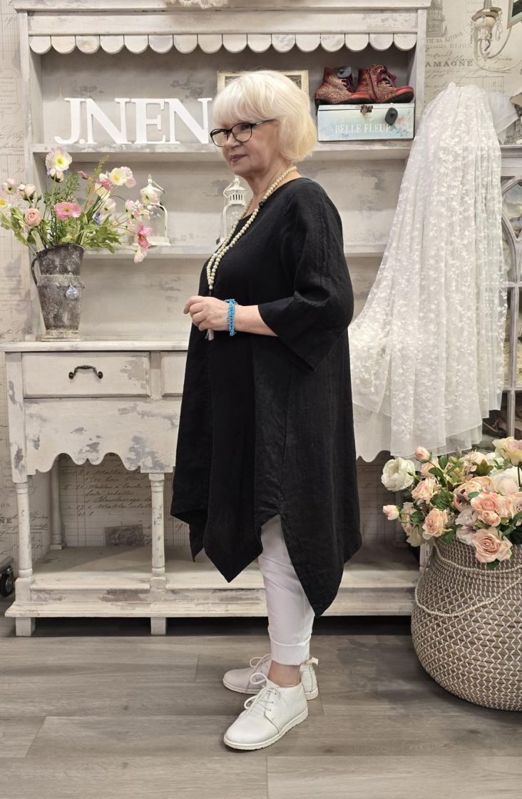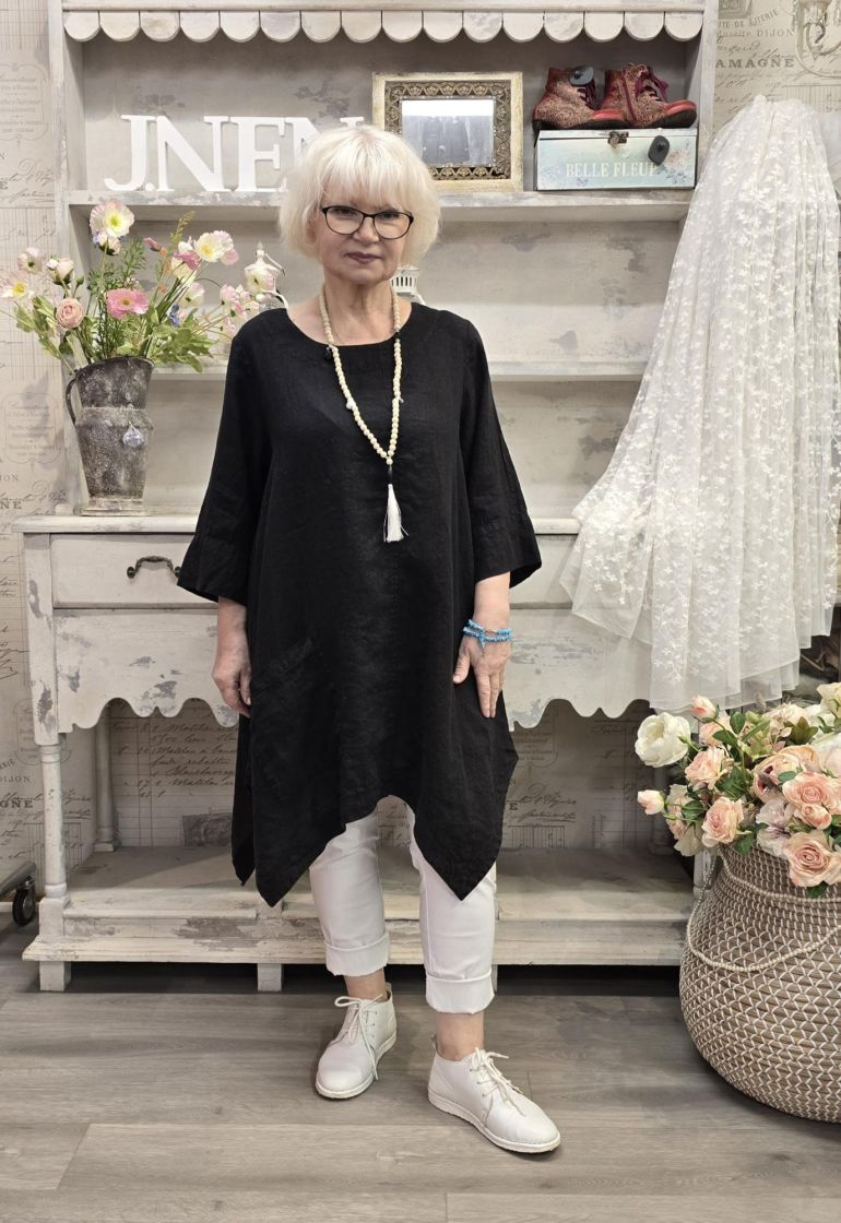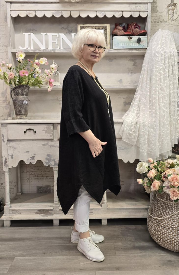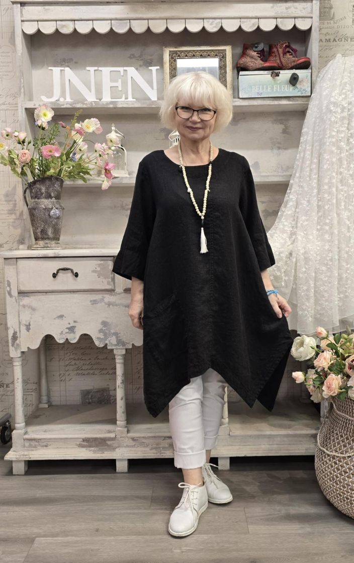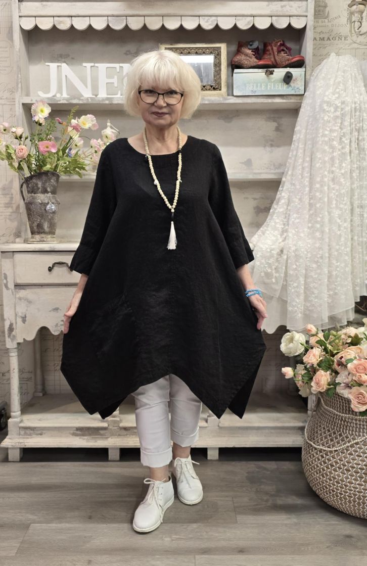 Tämä Grizas klassikko tunika on todella pehmeää pellavaa ja siinä on uniikki, epätasainen helma joka aaltoilee mukanasi.