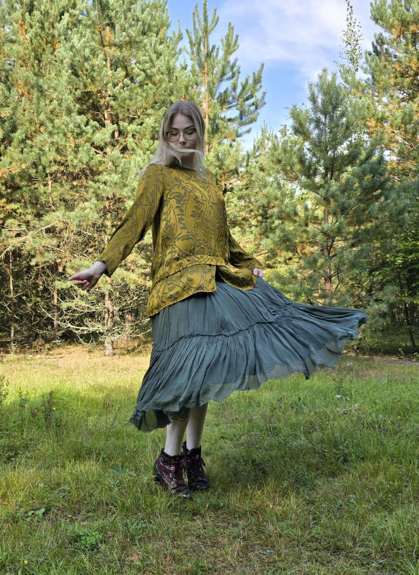 Materiaali: 65% viskoosi, 35% silkki. Korkealaatuinen sekoitus joka on hyvin hengittävä, iholla viileältä tuntuva ja erittäin mukava. Haluat käyttää sitä uudestaan ja uudestaan!