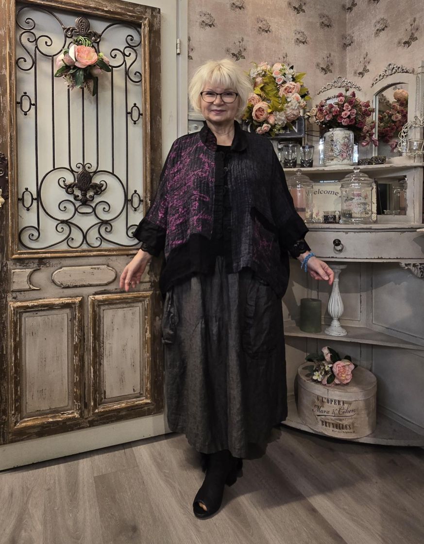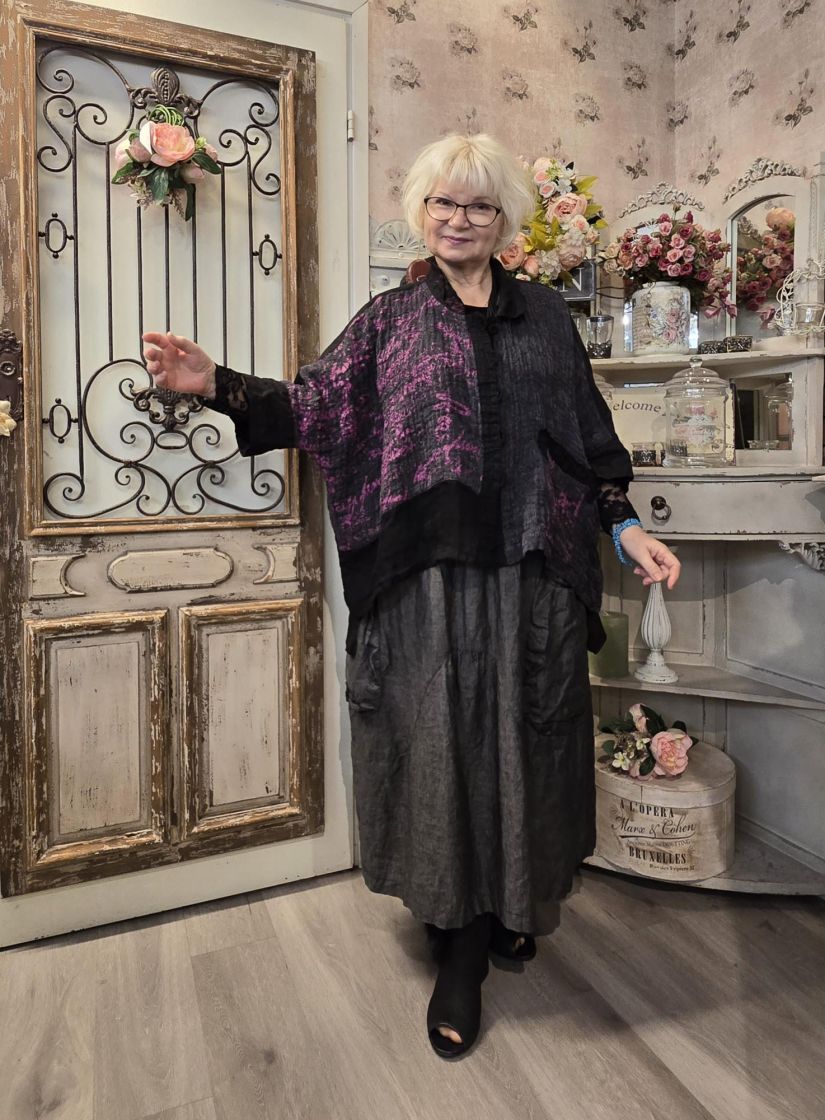 Uniikki malli tilavilla mitoituksilla jossa ei ole istutettuja hartialinjoja. Todella mukava!