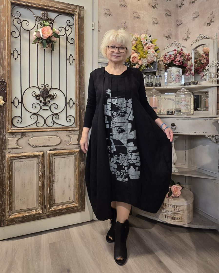 Materiaali: 100% pestyä pellavaa. Hyvin hengittävä ja mukava kudos. Hihat ovat joustavaa ja mukavan tuntuista viskoosia joka tuntuu iholla kivasti viileältä.