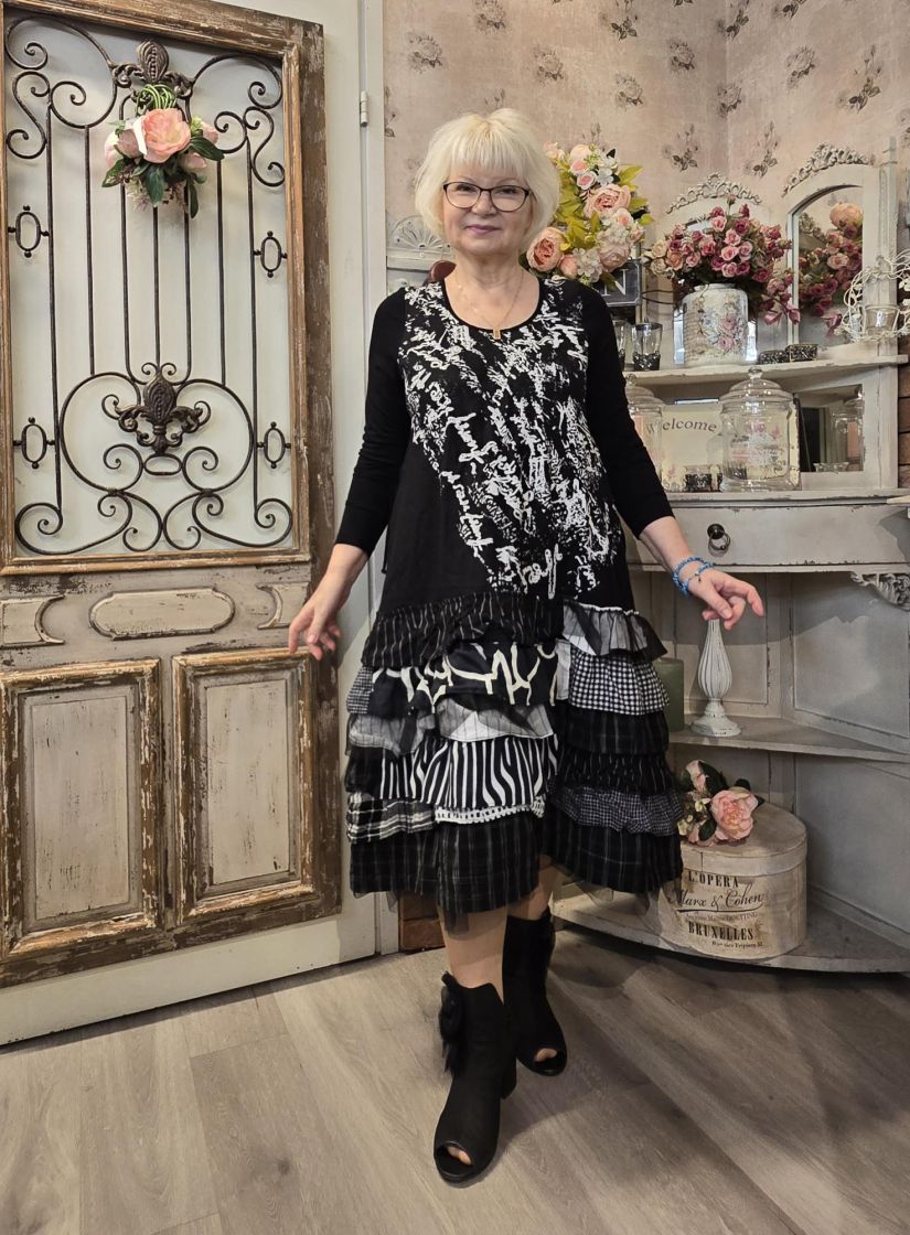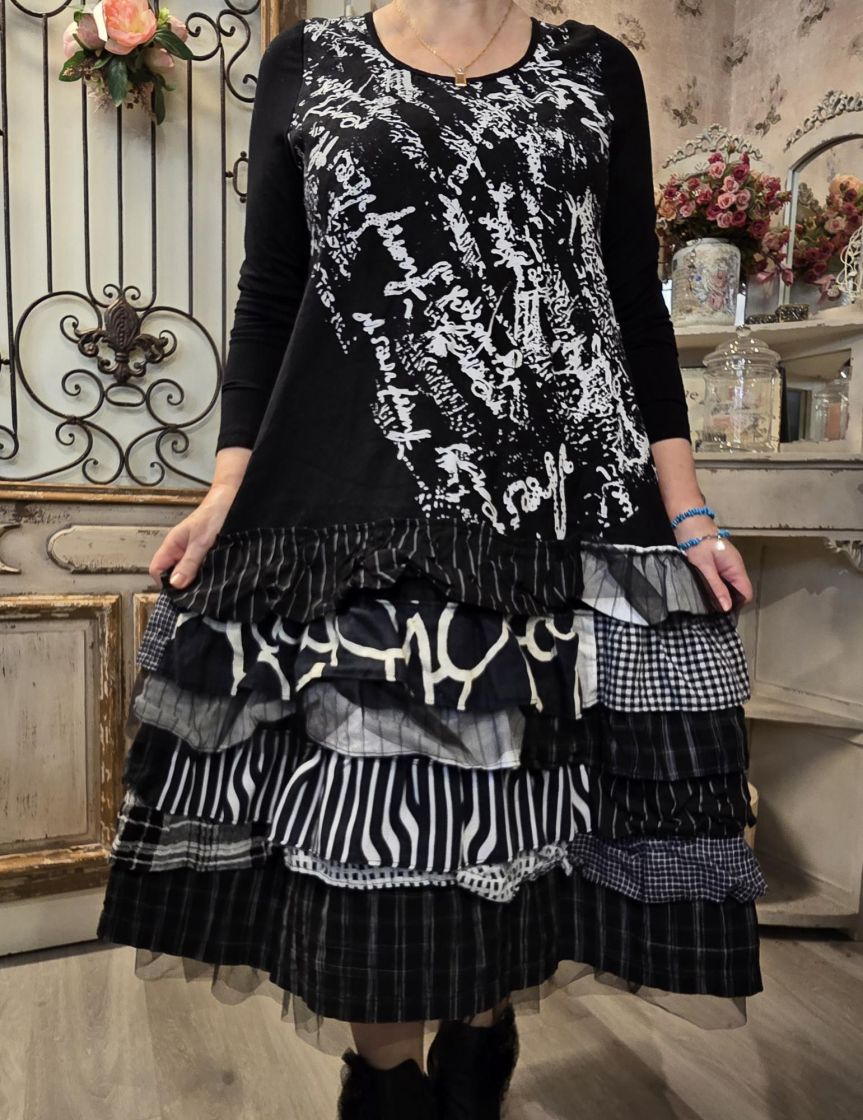 Todella näyttävä ja kaunis mekko jonka upea helma koostuu monista kerroksista eri kuoseja, frilloja ja tylliä.