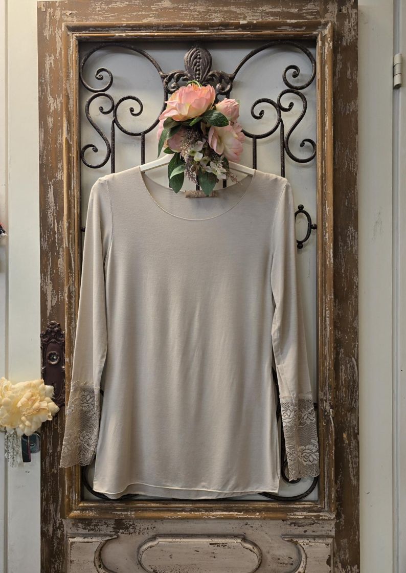 Marta du Château Puuteri/latte paita pitsi hihojensuilla kaunis aluspaita joustavasta viskoosista