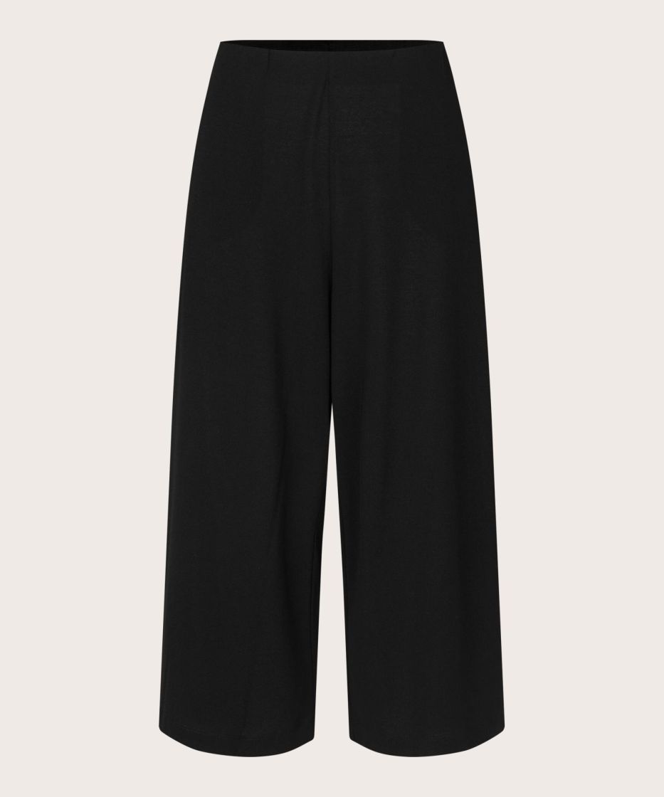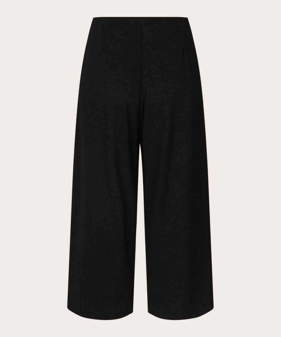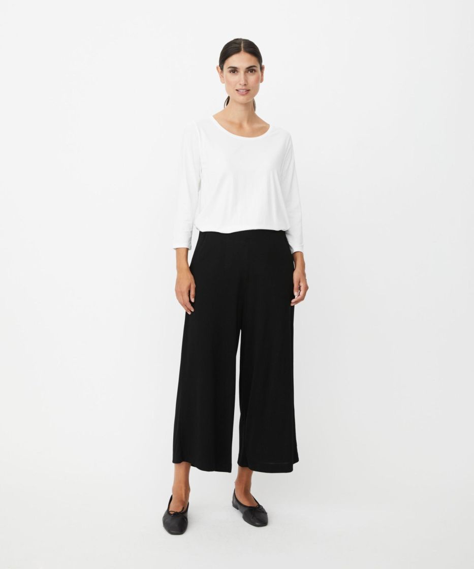 Nämä housut ovat sellainen perusvaate, jota voit käyttää uudestaan ja uudestaan. Pehmeästä jerseystä valmistetut housut tuntuvat unenomaiselta ihoa vasten ja niissä on yksinkertainen, ajaton muotoilu. Housuissa on lyhyt pituus, leveät lahkeet ja huomaamattomat sivutaskut, jotka antavat niille rennon mutta elegantin ilmeen. Yhdistä ne mihin tahansa valkoisesta paidasta pehmeään neuleeseen tai värikkääseen yläosaan – mahdollisuudet ovat rajattomat.