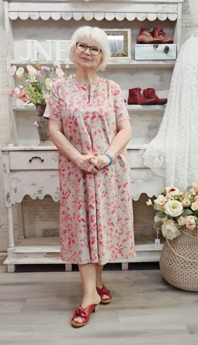 Joitakin tyylejä on vaikea unohtaa, ja tämä naisellinen mekko on ehdottomasti yksi niistä. Oranssinvaaleanpunaisella kukkakuosillaan, joka huokuu auringonpaistetta ja kesää, tämä mekko on valmistettu pehmeimmästä viskoosin ja pellavan sekoituksesta, mikä tekee siitä unelman päällä. Mekossa on yksinkertainen ilme naisellisella halkiolla pääntiessä ja vekillä edessä. A-muotoinen leikkaus antaa sen laskeutua pehmeästi ja mukavasti vartalon yli. Yhdistä se lyhyeen takkiin ja suosikkikoruihisi saadaksesi vaivattomasti naisellisen ilmeen.