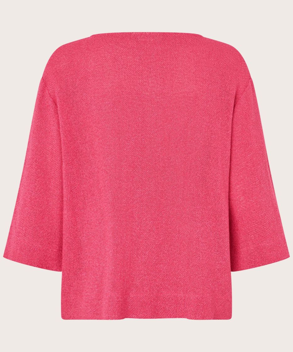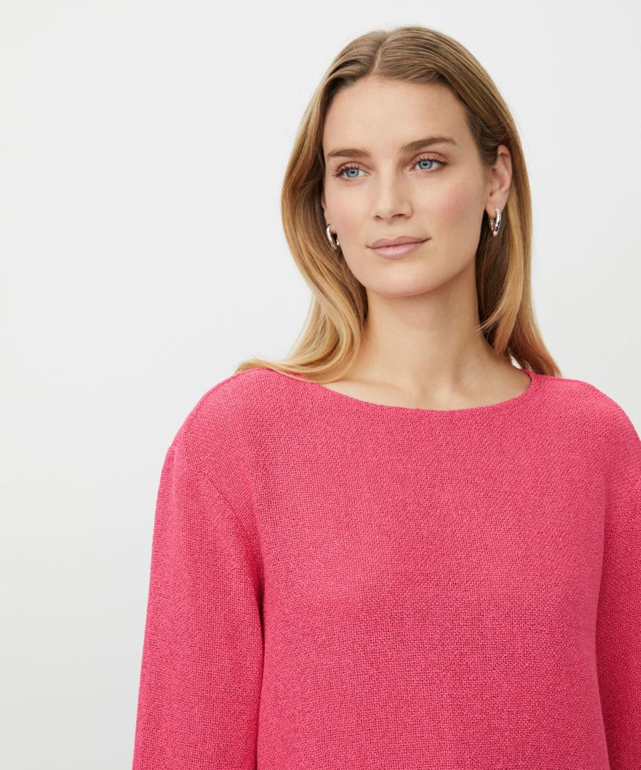 Bouclé-kankaan kaunis rakenne on oikotie ylelliseen ilmeeseen. Tässä pehmeästä bouclé-kankaasta valmistetussa yläosassa on yksinkertainen ja tyylikäs muotoilu, pyöreä pääntie, kolmeneljäsosahihat ja pienet sivuhalkiot. Klassinen leikkaus suorilla linjoilla antaa yläosan laskeutua kauniisti vartalon myötäisesti ja varmistaa mukavan istuvuuden. Käytä sitä sellaisenaan tai esim. paidan tai ohuen poolopaidan kanssa saadaksesi elegantin kerrostetun ilmeen.