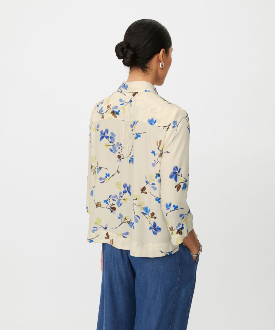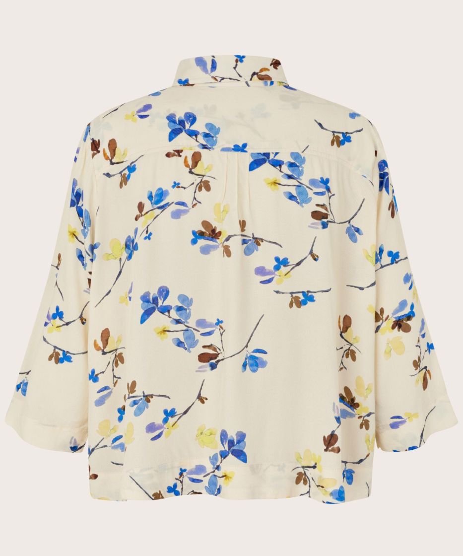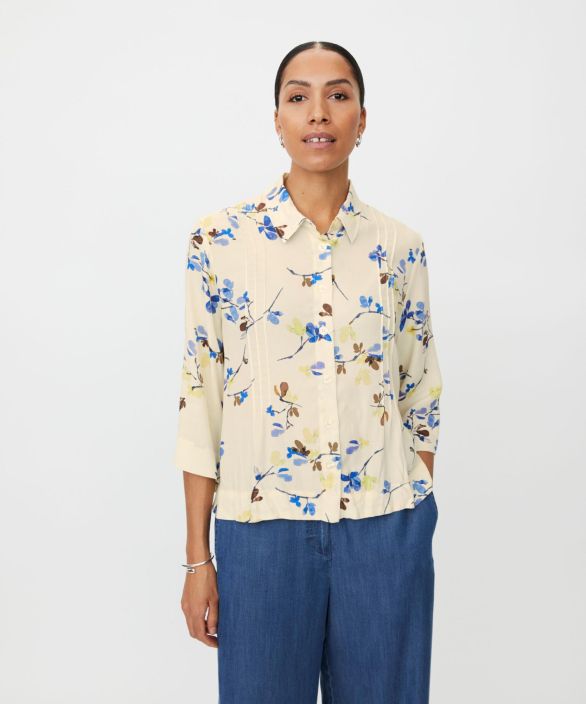 Tämä kaunis viskoosipaita tuntuu pehmeältä ja kevyeltä ihoa vasten. Lyhyt, laatikkomainen leikkaus koristeellisilla hiuslaskoksilla ja pienillä halkioilla antaa paidalle tyylikkään ilmeen ja runsaasti liikkumisvapautta. Kukkakuvio lisää elegantin ja naisellisen silauksen, joten se sopii täydellisesti sekä arkeen että tyylikkäisiin tilaisuuksiin. Yhdistä se farkkujen tai yksinkertaisten housujen kanssa huolettoman ja tyylikkään ilmeen saavuttamiseksi.