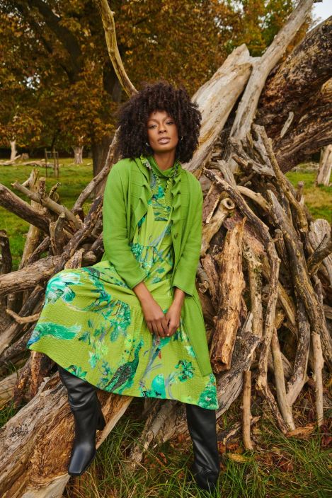 44-koon rinnanympärys 116cm, pituus 123cm.