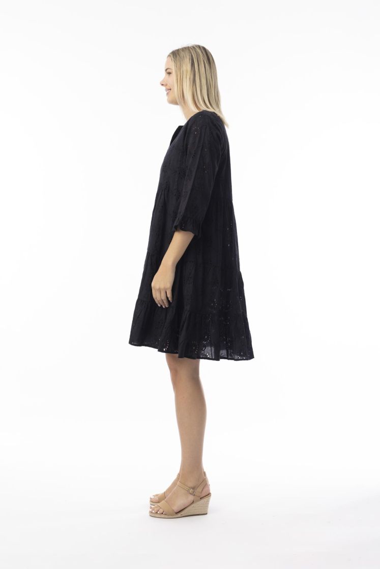 Tämä mekko on täydellinen kesään miellyttävän puuvillan ansiosta. Siinä on päällyskankaassa kauniit reijät ja alla on miellyttävä alusmekko.