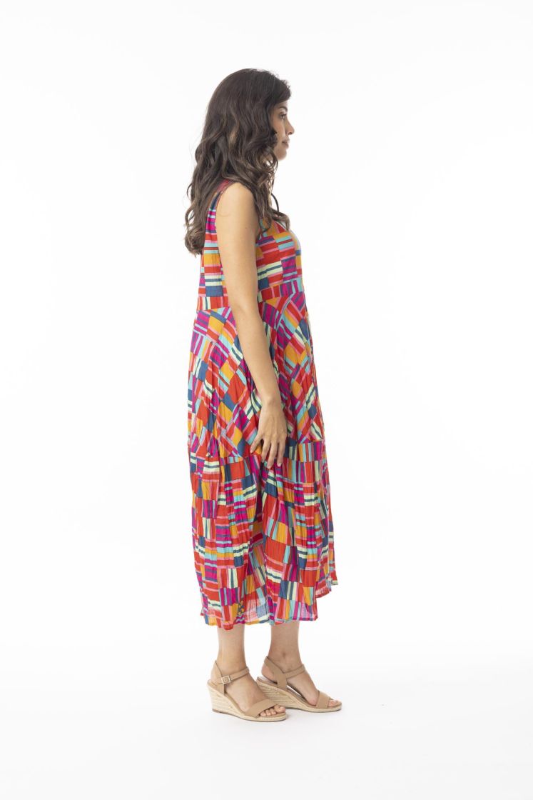 Ihana balloona helmainen Orientique mekko värikkäällä raitakuosilla! Värit ovat ihanasti murrettuja, eli siihen sopii asusteeksi todella moni väri.