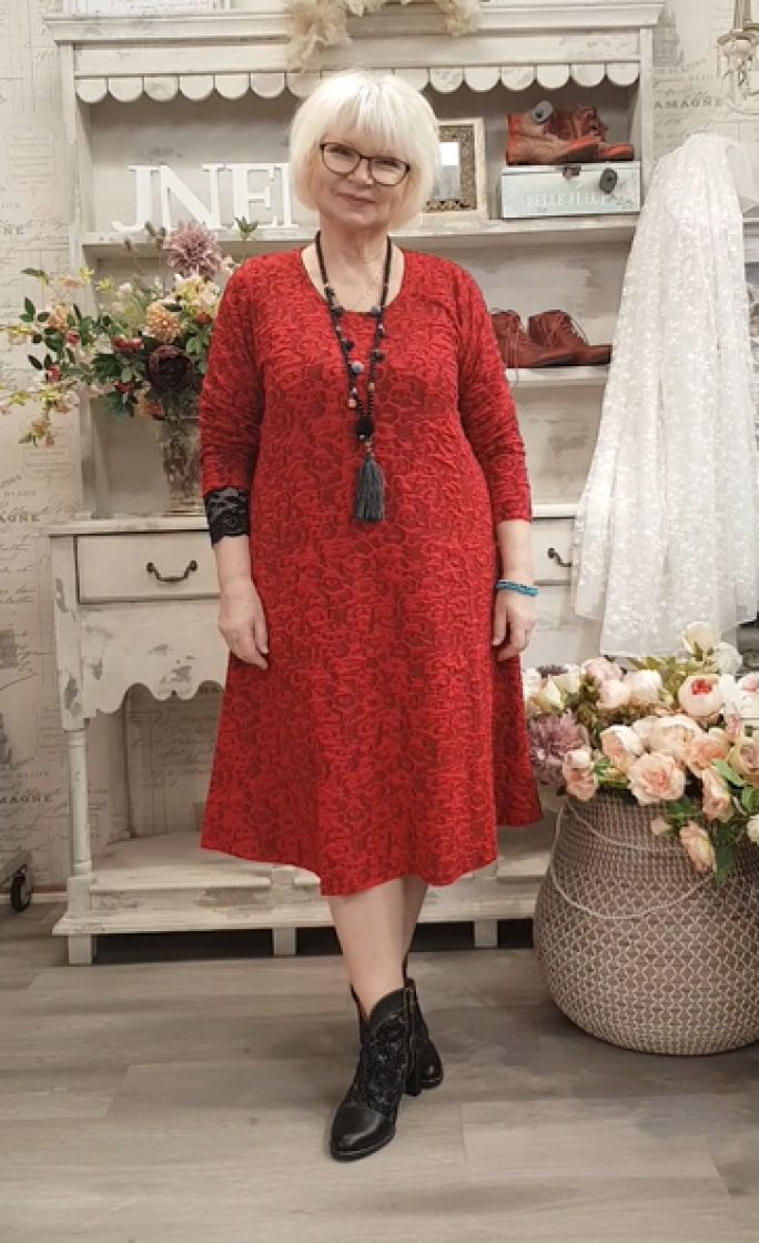 Yläosa on tyylikkäästi istuva ja siinä on sitten mukava laskeutuminen leveäksi helmaksi.