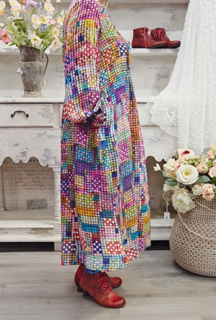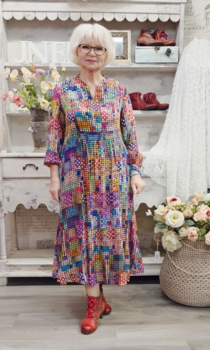Tässä mekossa on aivan IHANA värikäs ruutukuosi ja se on valmistettu pehmeästä, hyvin hengittävästä viskoosista. Päälle voit pukea minkä värisen jakun vain.