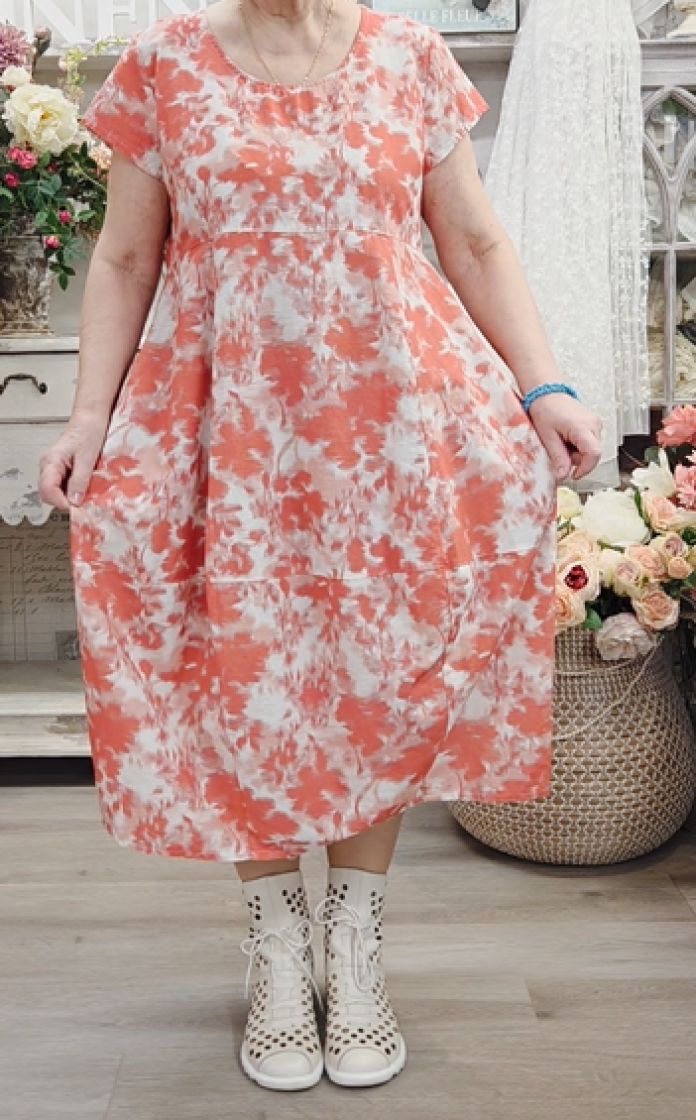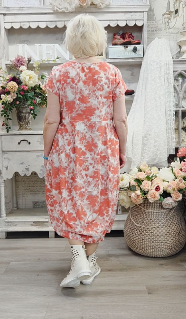 Kaunis ja hento kukkakuosi sopii täydellisesti tähän tulppaani-helmaiseen mekkoon.