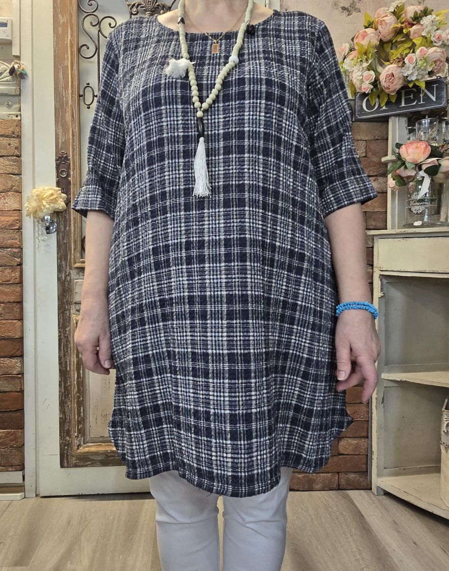 THING tunika 7194 Navy tummansininen tyylikäs ruutukuosi ihanassa sekoituksessa luonnonkuituja